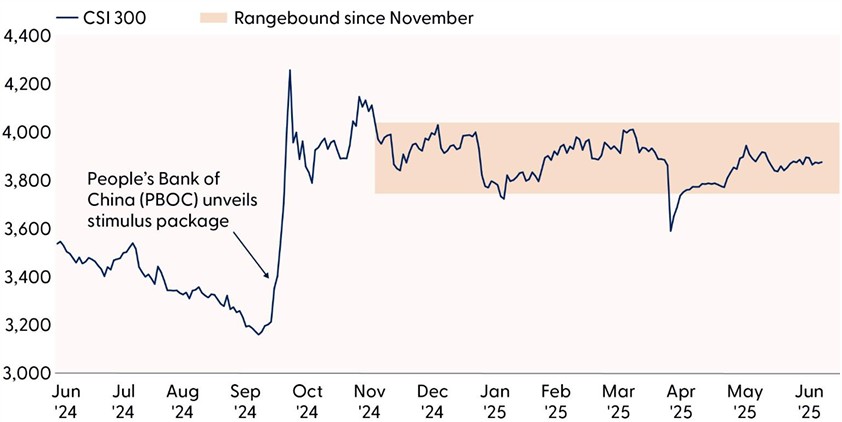 For H-shares, less sporadic and more steady foreign investor inflows will be essential in sustaining recent momentum. While geopolitical risks and trade uncertainties remain, the recent strength in H-shares suggests that international investors are increasingly viewing Chinese equities as a viable place to allocate again. If this trend persists, it will have ramifications. Chinese stocks comprise over 25% of most major emerging market equity benchmarks, and a sustained rebound could have significant ripple effects across broader emerging market equities.